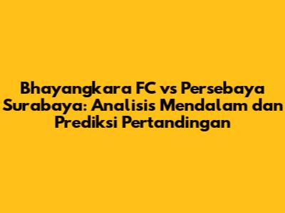 Pertandingan antara Bhayangkara FC dan Persebaya Surabaya selalu menyajikan tontonan yang menarik dan penuh drama. Kedua tim memiliki kualitas pemain dan strategi yang berbeda. Bhayangkara FC dikenal dengan permainan disiplin dan taktis, sementara Persebaya dikenal dengan permainan menyerang yang atraktif. Siapakah yang akan keluar sebagai pemenang dalam pertandingan kali ini? Mari kita saksikan bersama!
