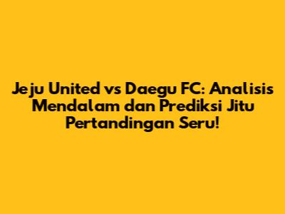 Football lovers, siap-siap buat pertandingan seru antara Jeju United dan Daegu FC! Duel sengit ini pasti bakal menyajikan tontonan yang menarik. Buat kamu yang pengen tau lebih dalam soal kekuatan kedua tim, prediksi pertandingan, dan head-to-head mereka, yuk simak artikel ini sampai selesai!