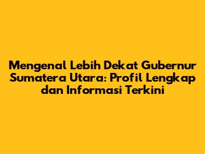 Halo football lover dan seluruh warga Sumatera Utara! Kali ini, kita akan membahas tuntas tentang sosok Gubernur Sumatera Utara, mulai dari profil lengkap, sepak terjangnya, hingga informasi terkini mengenai program dan kebijakan yang sedang dijalankan. Yuk, simak ulasan mendalam berikut ini!