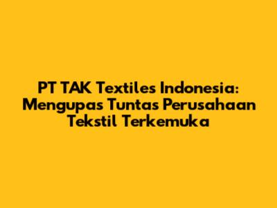 PT TAK Textiles Indonesia merupakan salah satu perusahaan tekstil yang memiliki peran penting dalam industri tekstil di Indonesia. Dengan menghasilkan berbagai macam produk tekstil berkualitas tinggi, PT TAK Textiles Indonesia turut berkontribusi dalam memenuhi kebutuhan pasar domestik maupun ekspor. Perusahaan ini juga memberikan lapangan kerja bagi masyarakat dan berkontribusi pada pembangunan ekonomi Indonesia. Bagi kamu yang tertarik dengan industri tekstil, PT TAK Textiles Indonesia bisa menjadi pilihan yang menarik untuk berkarir atau menjalin kerjasama bisnis. Semoga artikel ini memberikan informasi yang bermanfaat bagi kamu!