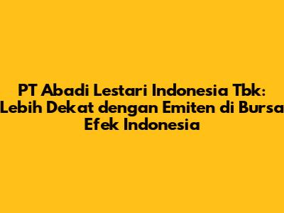 PT Abadi Lestari Indonesia Tbk (IDX: ABADI) adalah perusahaan yang bergerak di bidang perdagangan umum dan jasa. Perusahaan ini didirikan pada tahun [tahun pendirian] dan telah menjadi bagian dari pasar modal Indonesia sejak [tahun listing]. Dengan pengalaman bertahun-tahun, ABADI terus berkembang dan beradaptasi dengan dinamika pasar.
