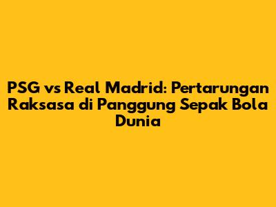 PSG vs Real Madrid adalah pertandingan yang wajib ditonton oleh semua football lover. Pertemuan dua raksasa ini selalu menyajikan drama, gol-gol indah, dan momen-momen tak terlupakan. Jangan lewatkan pertandingan seru ini dan saksikan bagaimana kedua tim beradu strategi, kekuatan, dan kemampuan untuk meraih kemenangan. Jadilah saksi sejarah dalam pertarungan dua tim terbaik di dunia sepak bola. Dukung tim kesayangan Anda dan nikmati setiap momen dalam pertandingan. Pertandingan ini akan menjadi pengalaman yang tak terlupakan bagi para penggemar sepak bola di seluruh dunia. Jangan lupa untuk terus mengikuti perkembangan berita terbaru seputar kedua tim agar Anda tidak ketinggalan informasi penting.