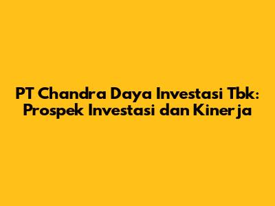 PT Chandra Daya Investasi Tbk: Prospek Investasi Dan Kinerja