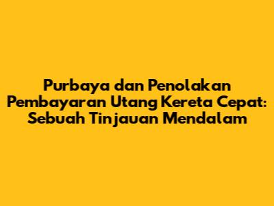 Purbaya dan Penolakan Pembayaran Utang Kereta Cepat: Sebuah Tinjauan Mendalam