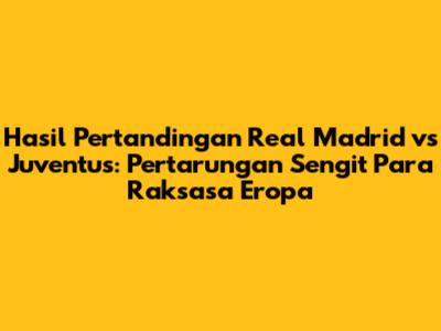 Halo football lover! Siapa di sini yang nggak kenal Real Madrid dan Juventus? Dua raksasa sepak bola Eropa ini selalu menyajikan pertandingan yang epic dan penuh drama. Nah, kali ini kita bakal ngebahas tuntas hasil pertandingan terbaru antara Real Madrid dan Juventus. Siap-siap buat nostalgia atau mungkin malah baru tahu hasilnya? Yuk, simak terus!