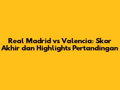 Setelah 90 menit pertandingan yang sengit, skor akhir antara Real Madrid dan Valencia adalah [Skor Pertandingan]. Pertandingan ini menyajikan banyak momen menarik dan menegangkan bagi para penggemar sepak bola. Kedua tim bermain dengan semangat juang yang tinggi dan memberikan yang terbaik di lapangan.
