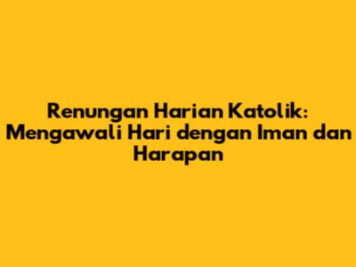 Renungan Harian Katolik: Mengawali Hari dengan Iman dan Harapan