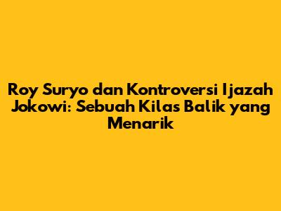Peran Roy Suryo: Terlepas dari kontroversi yang ada, Roy Suryo telah memainkan peran penting dalam isu ijazah Jokowi. Ia telah berhasil menciptakan narasi yang menarik perhatian publik dan memicu perdebatan yang intens. Namun, kita sebagai masyarakat harus tetap kritis terhadap pernyataan-pernyataan Roy Suryo dan jangan menelan mentah-mentah informasi yang disampaikannya.