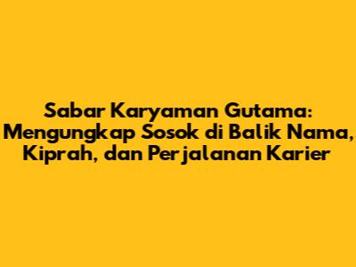 Sabar Karyaman Gutama: Mengungkap Sosok di Balik Nama, Kiprah, dan Perjalanan Karier