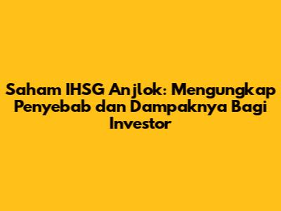 Saham IHSG Anjlok: Apa Penyebabnya?