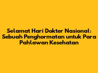 Mari kita jadikan Hari Dokter Nasional sebagai momen untuk merenungkan peran penting para dokter dalam kehidupan kita, serta memberikan apresiasi dan dukungan kepada mereka. Ingatlah, mereka adalah pahlawan yang selalu ada untuk kita.