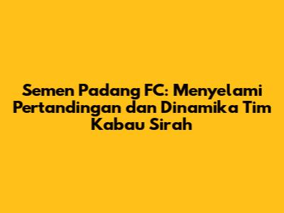 Semen Padang FC adalah salah satu tim sepak bola legendaris di Indonesia, khususnya di kancah sepak bola Sumatera Barat. Bagi football lovers, nama "Kabau Sirah" sudah tidak asing lagi. Tim ini memiliki sejarah panjang, dukungan suporter fanatik, dan selalu menghadirkan pertandingan yang menarik. Artikel ini akan membahas secara mendalam tentang Semen Padang FC, mulai dari jadwal pertandingan, profil lawan, hingga kabar terkini mengenai tim kebanggaan masyarakat Sumatera Barat ini. Mari kita bedah tuntas segala hal yang berkaitan dengan Semen Padang FC!