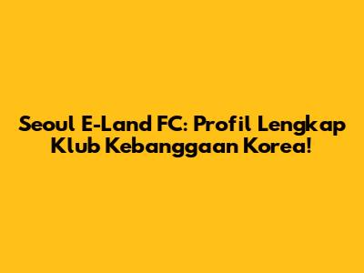 Seoul E-Land FC: Profil Lengkap Klub Kebanggaan Korea!