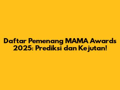 MAMA Awards, atau Mnet Asian Music Awards, adalah salah satu ajang penghargaan musik terbesar dan paling bergengsi di Asia. Buat para football lover K-Pop dan penggemar musik Asia lainnya, pastinya penasaran banget kan siapa saja yang bakal jadi pemenang di MAMA Awards 2025? Yuk, kita bahas prediksi dan kejutan yang mungkin terjadi di ajang penghargaan ini!