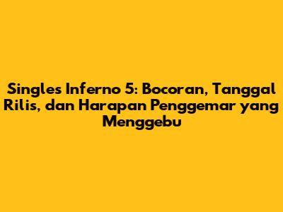 Single's Inferno 5: Bocoran, Tanggal Rilis, Dan Harapan Penggemar