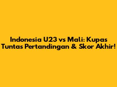 Nah, ini dia yang paling ditunggu-tunggu! Skor akhir pertandingan Indonesia U23 vs Mali U23 adalah [masukkan skor di sini]. Pertandingan ini berlangsung sangat ketat dan sengit, dengan kedua tim bermain dengan semangat juang yang tinggi. Hasil akhir ini tentu menjadi pelajaran berharga bagi kedua tim untuk terus berbenah dan meningkatkan performa di masa depan.