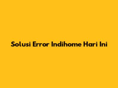Solusi Error Indihome Hari Ini