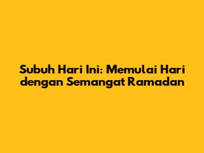 Subuh Hari Ini: Memulai Hari dengan Semangat Ramadan