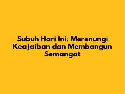 Subuh Hari Ini: Merenungi Keajaiban Dan Membangun Semangat