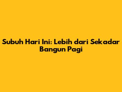 Subuh Hari Ini: Lebih dari Sekadar Bangun Pagi