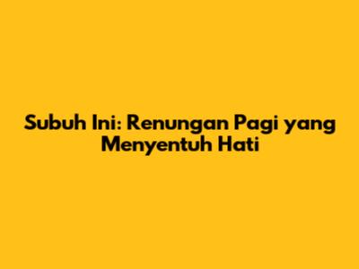 Subuh Ini: Renungan Pagi Yang Menyentuh Hati
