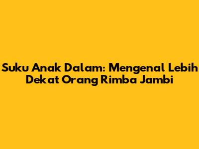 Siapa sih yang gak penasaran dengan kehidupan suku-suku pedalaman di Indonesia? Nah, kali ini kita bakal ngobrolin salah satu suku yang unik dan menarik banget, yaitu Suku Anak Dalam atau yang sering disebut juga Orang Rimba. Mereka ini mendiami hutan-hutan di Jambi dan Sumatera Selatan. Yuk, kita kenalan lebih dekat!