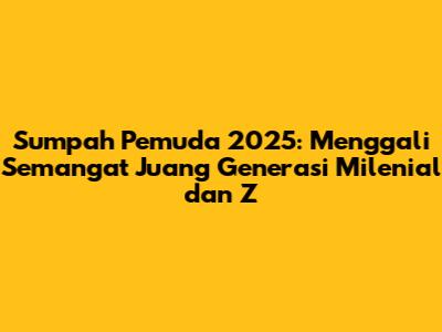 Sumpah Pemuda 2025 adalah momentum yang tepat untuk merenungkan kembali semangat persatuan, cinta tanah air, dan semangat juang. Sebagai generasi muda, kita memiliki peran yang sangat penting dalam membangun masa depan Indonesia yang gemilang. Kita harus mengaktualisasikan nilai-nilai Sumpah Pemuda dalam kehidupan sehari-hari, dengan meningkatkan rasa cinta tanah air, berpartisipasi dalam kegiatan sosial, dan terus berjuang untuk mencapai tujuan kita.