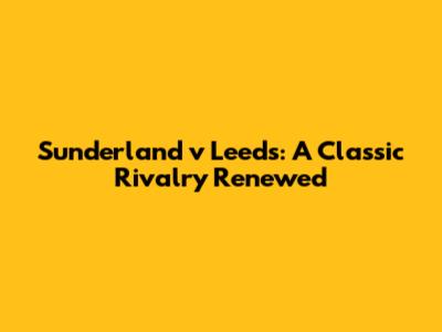 Sunderland V Leeds: A Classic Rivalry Renewed