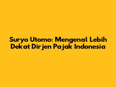 Siapa sih yang nggak kenal dengan sosok Dirjen Pajak? Buat kamu yang sering berurusan dengan pajak, pasti familiar banget dengan jabatan ini. Nah, kali ini kita bakal ngobrolin lebih dalam tentang Suryo Utomo, sang Direktur Jenderal Pajak Republik Indonesia. Kita akan bahas profil lengkapnya, sepak terjangnya di dunia perpajakan, hingga kebijakan-kebijakan yang telah diambilnya. Jadi, buat kamu yang penasaran, yuk simak artikel ini sampai selesai!