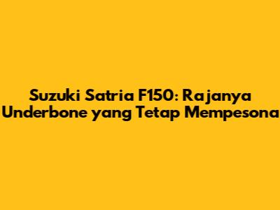 Suzuki Satria F150 adalah motor underbone yang menawarkan kombinasi sempurna antara performa, desain, dan handling. Meskipun sudah ada beberapa generasi penerus, Satria F150 tetap menjadi pilihan favorit bagi para penggemar kecepatan dan gaya. Dengan perawatan yang tepat, motor ini akan tetap memberikan pengalaman berkendara yang menyenangkan dan memuaskan.
