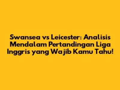 Hey football lover! Siap untuk pertandingan seru antara Swansea City dan Leicester City? Duel ini pastinya sayang banget untuk dilewatkan. Buat kamu yang pengen tau lebih dalam tentang head-to-head, prediksi, dan informasi penting lainnya, yuk simak artikel ini sampai habis! Kita bakal bahas tuntas semua yang perlu kamu tau sebelum menyaksikan big match ini.