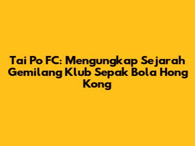 Tai Po FC: Klub Sepak Bola Hong Kong Yang Memukau