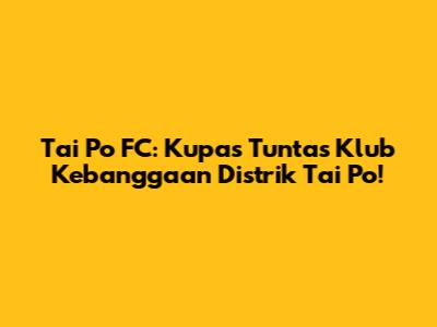Jadi, itulah sekilas tentang Tai Po FC, klub kebanggaan dari Distrik Tai Po di Hong Kong. Semoga artikel ini bisa nambah wawasan kamu tentang sepak bola dan menginspirasi kamu buat terus mendukung tim kesayangan kamu. Sampai jumpa di artikel selanjutnya!