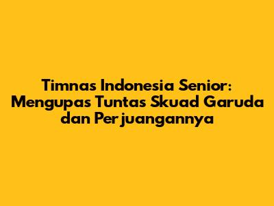 Timnas Indonesia Senior adalah kebanggaan kita semua. Mari kita dukung terus perjuangan Skuad Garuda dalam meraih prestasi di kancah sepak bola internasional. Dengan semangat juang yang tinggi, kerja keras, dan dukungan dari seluruh masyarakat, Timnas Indonesia diharapkan mampu mengharumkan nama bangsa di dunia.