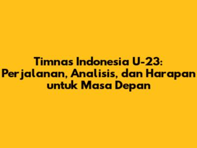 Timnas Indonesia U-23 memiliki potensi besar untuk meraih prestasi gemilang di masa depan. Dengan kerja keras, semangat juang, dan dukungan dari berbagai pihak, Garuda Muda akan mampu mewujudkan impian kita semua. Mari kita terus mendukung dan mengawal perjalanan Timnas Indonesia U-23. Semangat Garuda! Mari kita terus berikan dukungan penuh kepada Timnas Indonesia U-23, karena mereka adalah harapan bangsa di masa depan. Dukungan kita akan menjadi energi bagi mereka untuk terus berjuang dan meraih prestasi yang membanggakan.