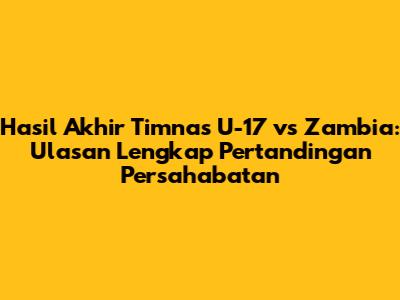 Football lover! Gimana nih vibes kalian setelah nonton pertandingan seru antara Timnas U-17 Indonesia melawan Zambia U-17? Pasti pada penasaran kan, siapa sih yang keluar sebagai pemenang? Nah, di artikel ini, kita bakal bahas tuntas hasil akhir pertandingan Timnas U-17 vs Zambia, lengkap dengan ulasan mendalam dan momen-momen penting yang terjadi di lapangan hijau. Jadi, simak terus ya!