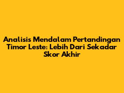 Analisis Mendalam Pertandingan Timor Leste: Lebih Dari Sekadar Skor Akhir