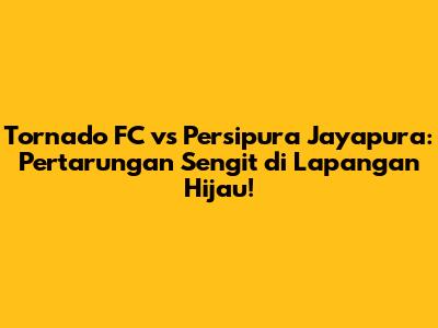 Jadi, buat kamu para football lover, jangan sampai ketinggalan pertandingan seru antara Tornado FC dan Persipura Jayapura! Pertandingan ini dijamin akan menyajikan pertarungan sengit di lapangan hijau dengan strategi dan pemain-pemain terbaik dari kedua tim. Siapkan diri untuk menyaksikan drama dan kejutan di sepanjang pertandingan. Mari kita dukung tim kesayangan kita dan nikmati sepak bola Indonesia!