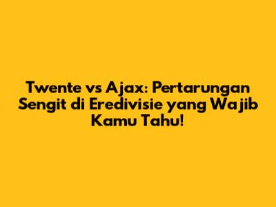 Pertandingan antara Twente vs Ajax adalah salah satu laga yang paling dinanti-nantikan di Eredivisie. Rivalitas yang panjang, sejarah yang kaya, dan kekuatan kedua tim yang seimbang membuat pertandingan ini selalu menjadi tontonan yang menarik. Dari analisis kekuatan tim, prediksi hasil pertandingan, hingga sorotan pemain kunci, semua aspek menarik dari pertandingan ini telah dibahas secara mendalam. Jangan lewatkan kesempatan untuk menyaksikan pertandingan seru ini, dan rasakan getaran semangat sepak bola yang luar biasa! Bagi para football lover, ini adalah kesempatan emas untuk menyaksikan pertandingan sepak bola berkualitas tinggi dan merasakan kegembiraan yang tak terlupakan. Dukung tim favoritmu, nikmati setiap momen dari pertandingan, dan jadilah saksi dari sejarah sepak bola yang akan terukir di lapangan hijau. Selamat menonton dan semoga tim kesayanganmu meraih kemenangan!