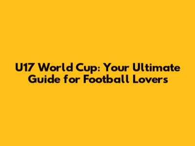 U17 World Cup: Your Ultimate Guide for Football Lovers
