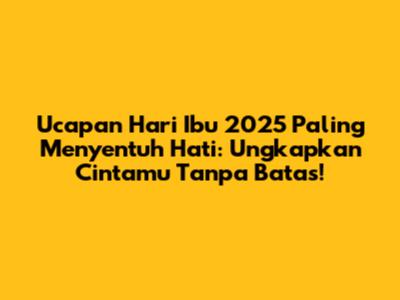- "Ucapan Hari Ibu 2025 ini takkan cukup untuk menggambarkan betapa besar cinta dan terima kasihku padamu, Ibu. Setiap langkah, setiap doa, dan setiap pengorbananmu telah membentukku menjadi diriku yang sekarang. Kau adalah anugerah terindah dalam hidupku. Semoga Ibu selalu sehat, bahagia, dan dilimpahi kebaikan. Aku mencintaimu lebih dari kata-kata bisa ucapkan, Ibu!"