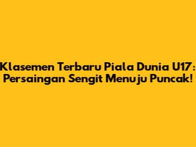 Jadi, buat kamu para football lover, jangan sampai ketinggalan aksi-aksi seru di Piala Dunia U17 ini ya! Terus pantengin klasemen terbaru dan dukung tim favoritmu! Siapa tahu, tim kesayanganmu bisa membuat kejutan dan melaju jauh di turnamen ini!