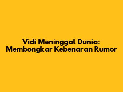 Vidi Meninggal Dunia: Membongkar Kebenaran Rumor